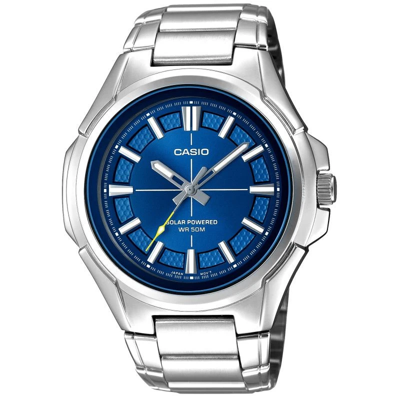 Využijte sílu slunce s analogovými hodinkami CASIO Solar! Díky solárnímu napájení se nemusíte starat o baterie - solární panel dobíjí hodinky světlem, což jim na plné nabití zajistí až 4 měsíce provozu. Ciferník v odstínu tmavě tmavě modré barvy připomíná proudící sluneční světlo a dodává celkovému vzhledu charakter a hloubku. Safírové sklíčko s antireflexní vrstvou nejen chrání před poškrábáním, ale také zvýrazňuje hloubku barev ciferníku a udržuje jej čitelný i za ostrého světla. Vodotěsnost 50 metrů poskytuje ochranu pro každodenní používání - nemusíte se obávat kontaktu s vodou, deště nebo mytí rukou. Jedná se o precizně zpracovaný model, který kombinuje moderní technologie s klasickou mužskou elegancí.