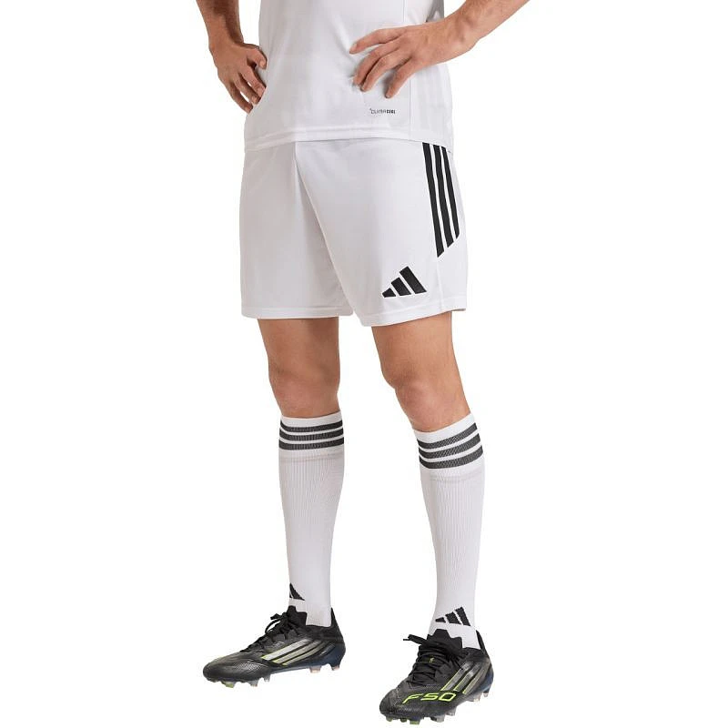 Pánské šortky adidas Tiro 26 League bílé KA8775 Pánské šortky adidas z řady Tiro jsou ideální na hru. Standardní střih. Elastický pas s vnitřní stahovací šňůrkou. Technologie Climacool. Pruhy na bocích. Malé vyšívané logo. Materiál: 100% recyklovaný polyester.