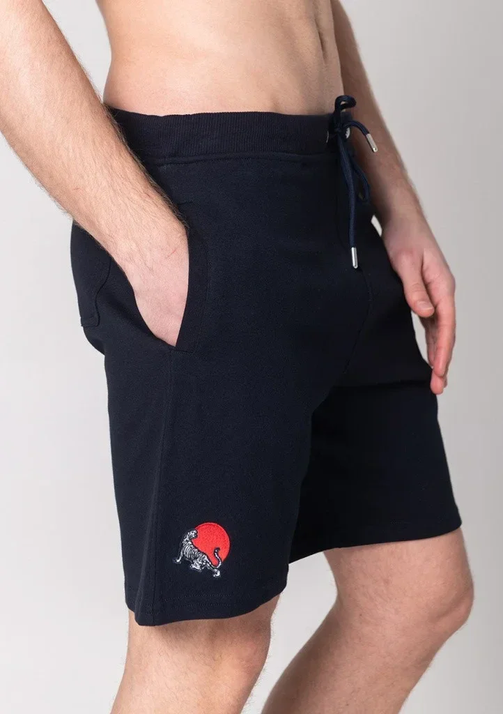 Pánské teplákové šortky John Frank. Šortky jsou volného střihu, v pase mají gumičku a šňůrku na utažení. Po stranách mají kapsy, stejně tak v zadní části. Na pravé nohavici je jemná nášivka.