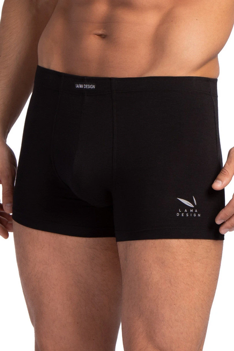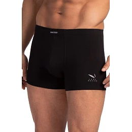 Pánské boxerky z měkkého bambusového úpletu s elastickým pasem, přiléhající k tělu, pohodlné a nositelné, v krabičce v černé a grafitové barvě.