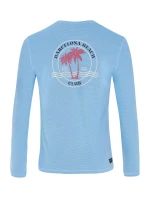 Decentní logo na hrudi a velký potisk na zádech přinášejí sportovní plážovou atmosféru.