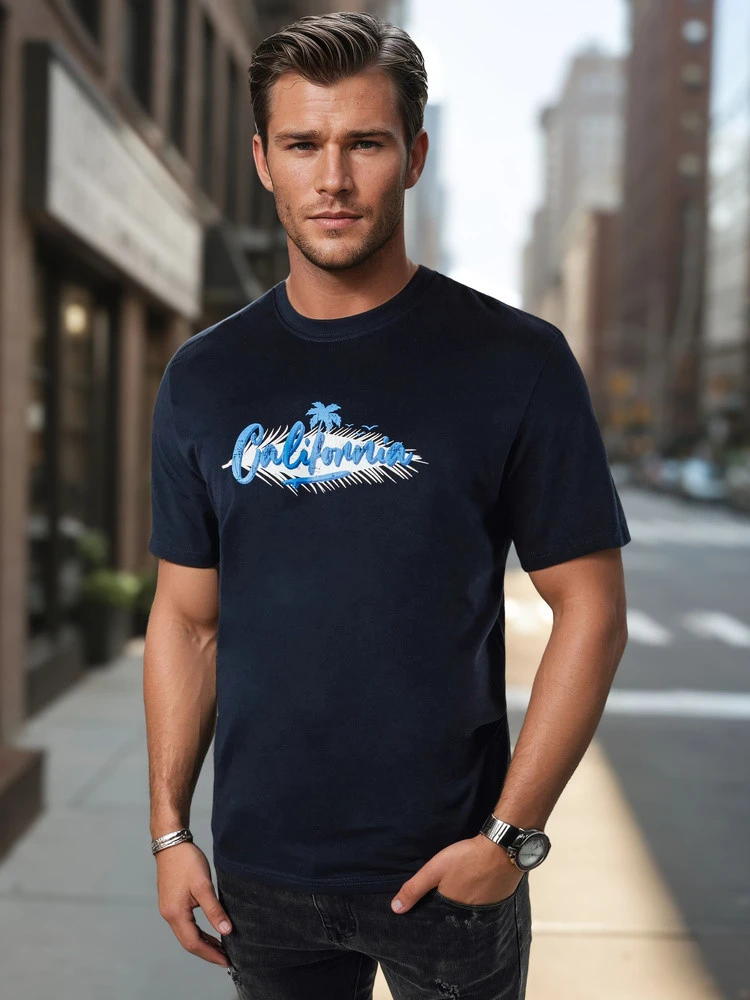 Pánské tmavě modré tričko s potiskem FashionStreet RX5372