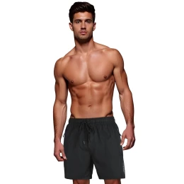 Stylové pánské plavky klasického střihu s elastickým pasem a šňůrkou pro nastavení. Lehká, rychleschnoucí tkanina s mikrotexturou poskytuje pohodlí při plavání i opalování. Boční kapsy na zip a logo dodávají moderní, sportovní nádech, ideální pro letní sezónu.