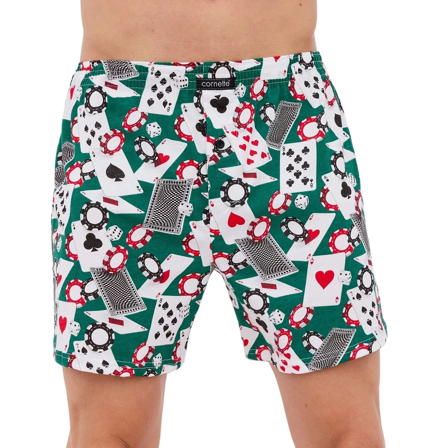Pánské trenýrky 001/164 Classic CORNETTE - zelená barva - z vysoce jakostní bavlny - se zábavným potiskem - volný střih modelu je zárukou pohodlí, které potřebuje a ocení každý muž - pohodlná guma v pase je obšitá bavlnou - rozparek se zapíná na knoflíček