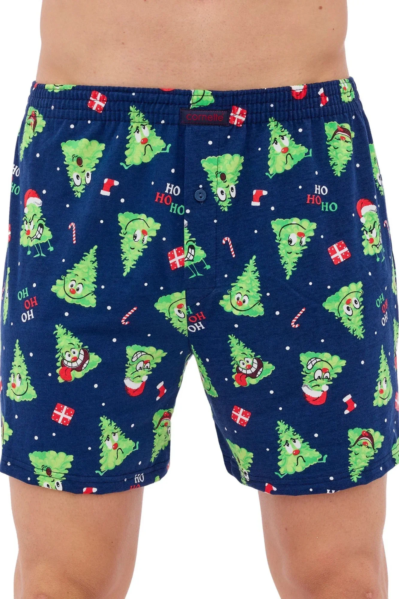 Pánské trenýrky 001/166 Classic CORNETTE - tmavě modrá barva - z vysoce jakostní bavlny - se zábavným potiskem - volný střih modelu je zárukou pohodlí, které potřebuje a ocení každý muž - pohodlná guma v pase je obšitá bavlnou - rozparek se zapíná na knoflíček - vánoční kolekce