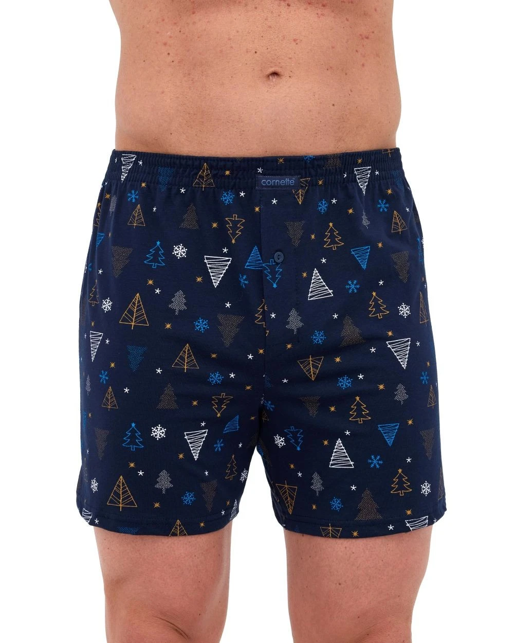 Pánské trenýrky 016/23 Night3 CORNETTE - tmavě modrá barva - volný střih modelu je zárukou pohodlí, které potřebuje a ocení každý muž - pohodlná guma v pase je obšitá bavlnou - rozparek se zapíná na knoflíček - vánoční kolekce