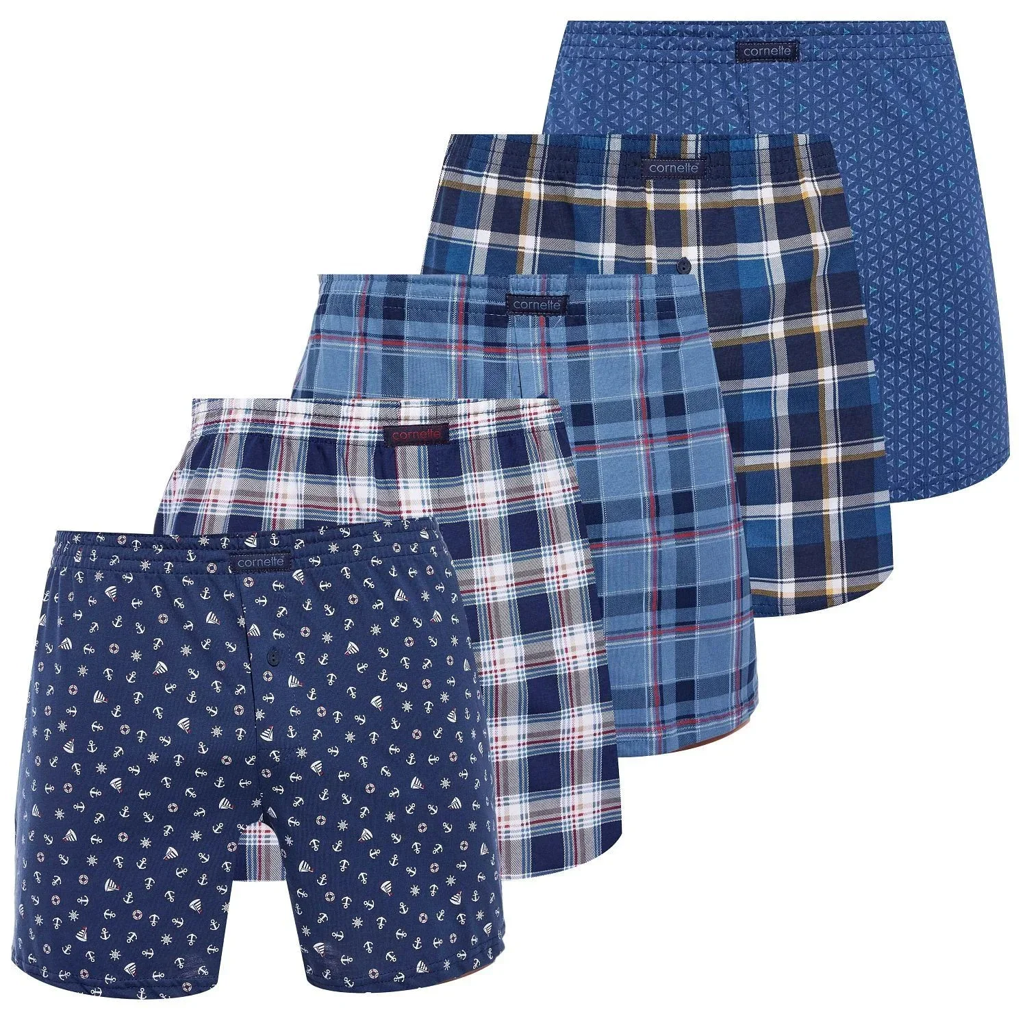 Pánské trenýrky 5 pack Comfort mix1 CORNETTE - z vysoce jakostní bavlny - volný střih modelu je zárukou pohodlí, které potřebuje a ocení každý muž - pohodlná guma v pase je obšitá bavlnou - rozparek se zapíná na knoflíček - 5 kusů v balení