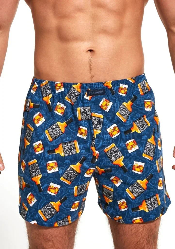 Bavlněné volné trenýrky s obrázkovým motivem od značky Cornette. Trenýrky mají obšitou gumu s nášivkou Cornette na přední části a propínání na knoflíček.