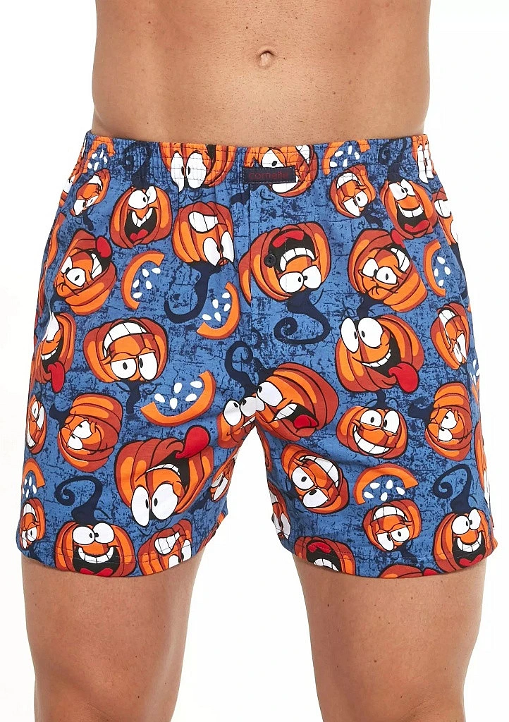 Bavlněné volné trenýrky s veselým motivem od značky Cornette. Trenýrky mají obšitou gumu s nášivkou Cornette na přední části a propínání na knoflíček.