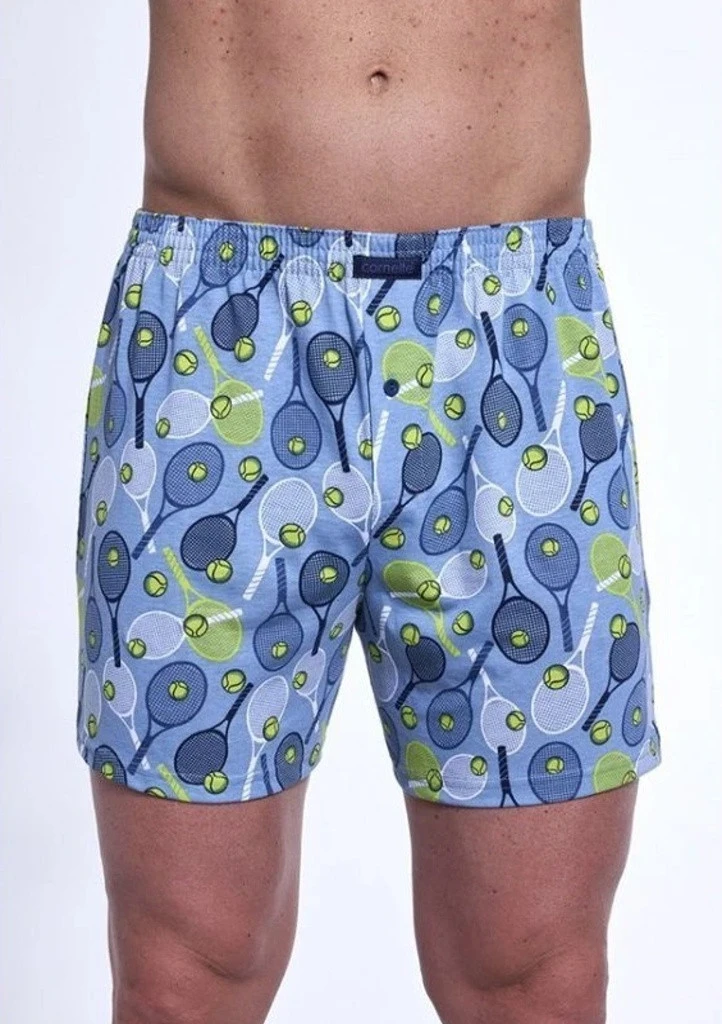 Bavlněné volné trenýrky s veselým motivem od značky Cornette. Trenýrky mají obšitou gumu s nášivkou Cornette na přední části a propínání na knoflíček.