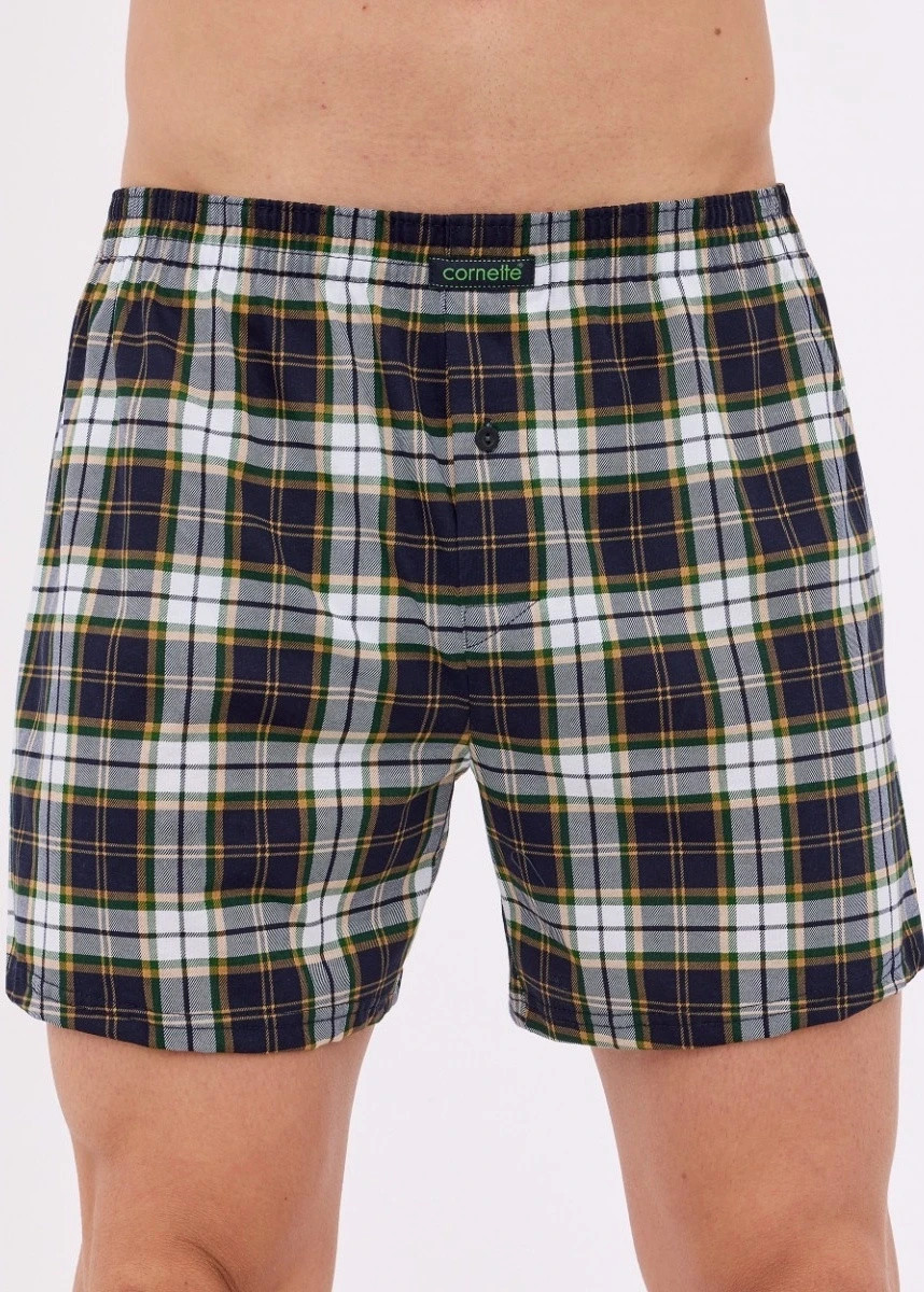 Bavlněné volné trenýrky od značky Cornette. Trenýrky mají obšitou gumu s nášivkou Cornette na přední části a propínání na knoflíček.