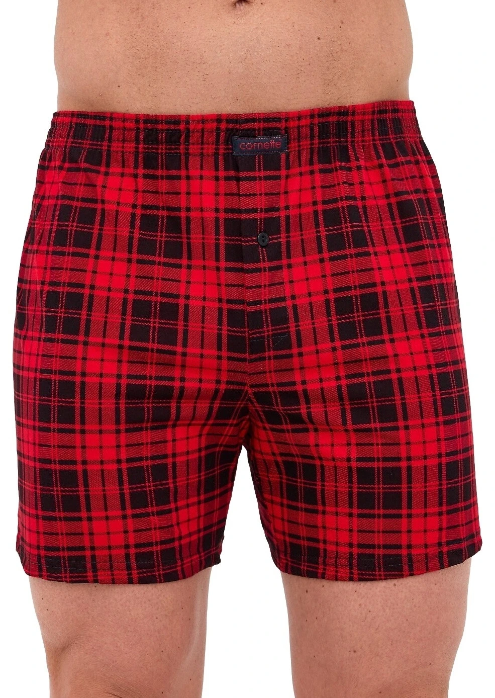 Bavlněné volné trenýrky od značky Cornette. Trenýrky mají obšitou gumu s nášivkou Cornette na přední části a propínání na knoflíček.