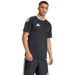 Pánské soutěžní zápasové tričko adidas Tiro 26 černobílé KA6169 Pánské tričko adidas je ideální zápasové tričko na fotbal. Přizpůsobený střih. Kulatý výstřih s měkkým límcem. Síťované panely. Technologie Climacool odvádí a rozptyluje pot. Recyklovaná vlákna. Tepelně přenosné logo. Pruhy na ramenou. Materiál: 100% recyklovaný polyester.