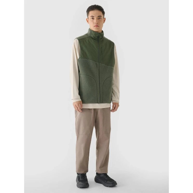 pánský šerpa bez rukávů 4F je praktickým a stylovým řešením pro každodenní aktivní lidi. Je ideální jako součást ležérního i sportovního oblečení a poskytuje tepelný komfort v chladnějších dnech. Je vyroben z odolného syntetického materiálu sherpa, je měkký, nadýchaný a příjemný na dotek a zároveň se snadno udržuje. Pravidelný střih a standardní délka přes boky zaručují pohodlné nošení a volnost pohybu pro každodenní použití.