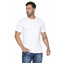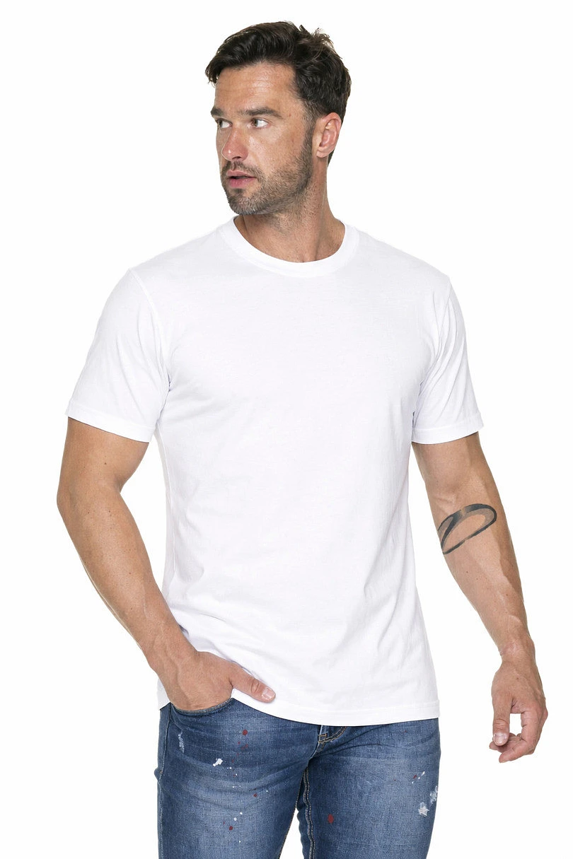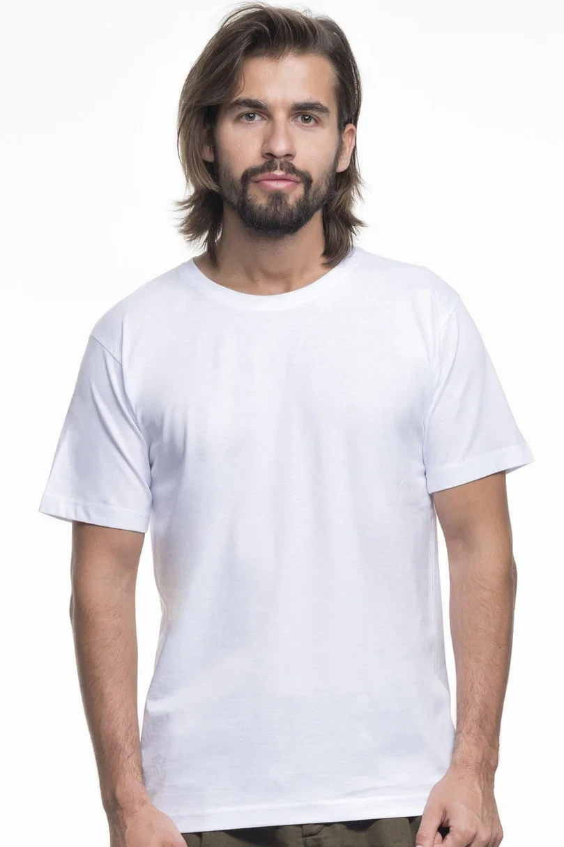 Pánské bavlněné tričko s elastickými lemy. Má bezešvé boky a ostatní švy jsou dvojté.