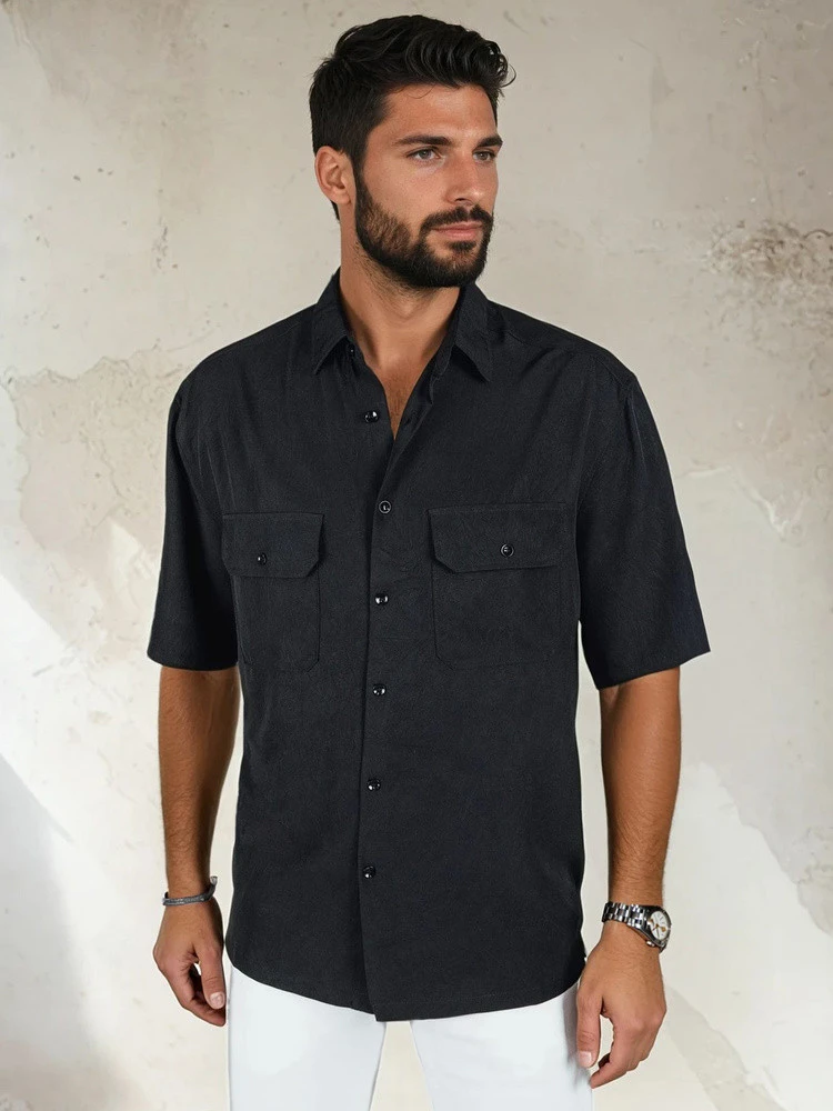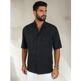 Stylová pánská košile z vysoce kvalitní viskózy je nezbytným doplňkem pro jarní sezónu. Model s krátkými rukávy, límečkem a zapínáním na knoflíky je ideální pro každodenní i poloformální styling. Dvě kapsy na přední straně dodávají praktický nádech, zatímco přírodní materiál zajišťuje celodenní pohodlí.