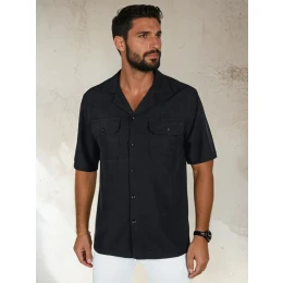Tato pánská košile z prodyšné viskózy, zapínaná na knoflíky a zakončená klasickým límečkem, je kombinací pohodlí a stylu. Krátké rukávy a dvě náprsní kapsy vytvářejí funkční celek. Ideální pro jarní outfity - ležérní i rafinovanější.