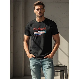 Toto pánské tričko s potiskem automobilu a nápisem "Los Angeles" je určeno pro fanoušky amerického stylu a motorismu. Grafika inspirovaná atmosférou západního pobřeží USA dodává tričku ležérní, městský nádech. Kombinace klasického automobilu a stylových nápisů vytváří ucelený, vizuálně přitažlivý design.