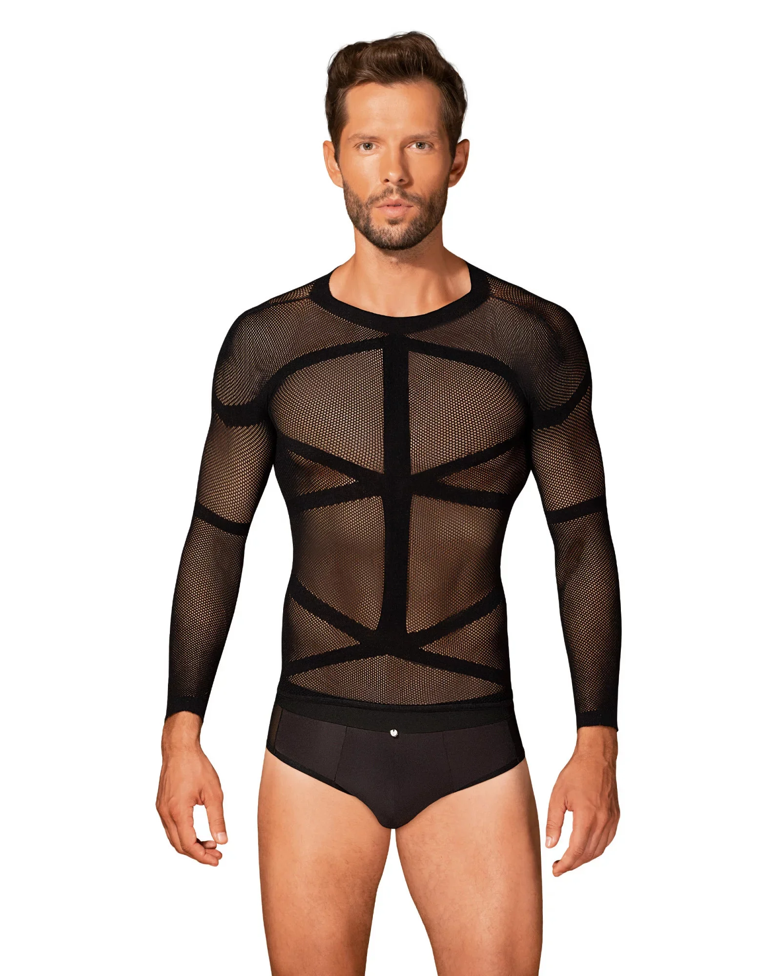 Tato pánská košile s dlouhým rukávem je vyrobena z tkaniny nejvyšší kvality. Pružný a jemný materiál dokonale přiléhá k tělu, zdůrazňuje jeho přednosti a díky sytě černé barvě působí celý outfit elegantně a šik. Geometrické vzory jsou poutavé, fascinující a zaručují jedinečný vzhled.