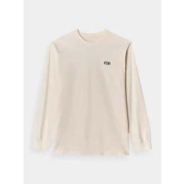 Pánský top s dlouhým rukávem je vyroben ze 100% bavlny, díky čemuž je měkký, odolný a příjemný na dotek. Kulatý výstřih je zakončen mírným žebrováním. Na zadní straně je viditelný potisk s motivem hor. Viditelný nápis "FOB" na přední straně.