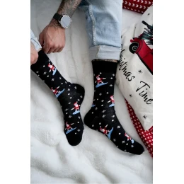 Kolorowy, wzorzysty motyw Mikołaja na snowboardzie dodaje uroku i wyjątkowego charakteru – idealny pomysł na prezent lub jako świąteczny akcent w codziennej stylizacji. Skarpetki są mi