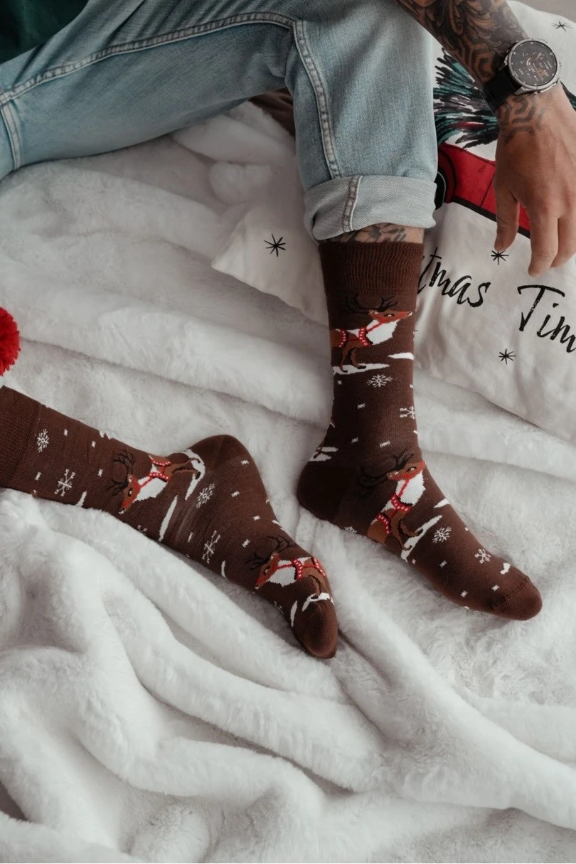 Pánské vánoční ponožky MILENA 1290.035 s rozkošným zapřaženým sobem jsou ideální volbou pro lidi, kteří chtějí dodat sváteční nádech svému každodennímu oblečení. Jsou vyrobeny z měkké, prodyšné bavlny s přídavkem elastanu a polyamidu a zaručují pohodlí, pružnost a odolnost. Díky výraznému vzorovanému motivu se ponožky hodí jako drobný dárek i jako zimní akcent.