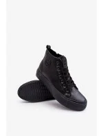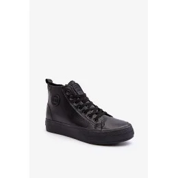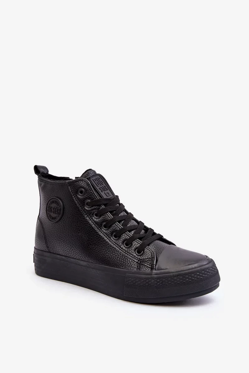 Klasické pánské tenisky značky Big Star s kotníkovým svrškem. Vyrobeno z eko kůže. Namontováno na platformě vyrobené z pryžového materiálu. Tento model se zapíná na zip na boku. Šněrování vpředu. Logo značky na svršku. Vnitřek je zateplen dekou na boty. Vyztužená pata.Při výběru velikosti se řiďte tabulkou velikostí.