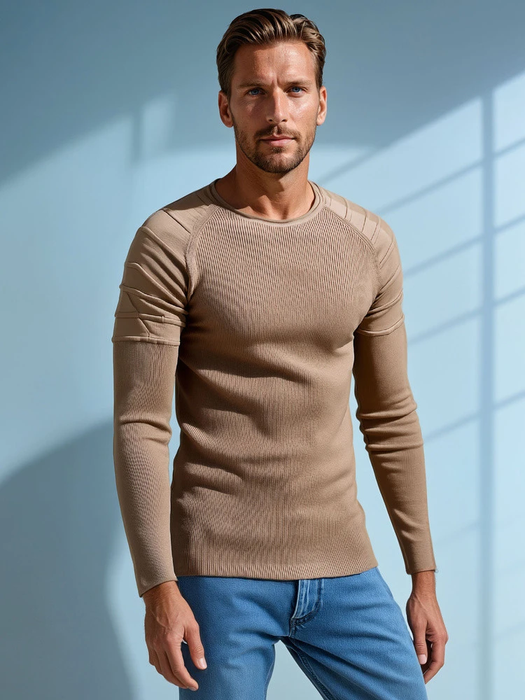 Stylový pánský svetr, který klade důraz na eleganci a všestrannost. Je vyroben z vysoce kvalitního úpletu a kombinuje klasický střih s moderní úpravou. Jemné prošívání na ramenou dodává charakter, zatímco měkká, pružná tkanina zajišťuje pohodlné celodenní nošení. Ideální pro každodenní stylizaci s džínami nebo elegantní komplety s kalhotami chinos.