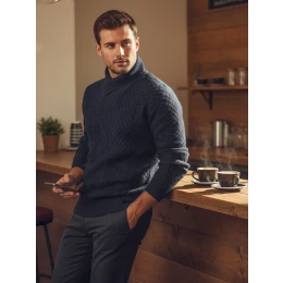 Stylový pánský svetr s nápadnou strukturou a výrazným šálovým límcem. Je vyroben z vysoce kvalitního materiálu, poskytuje teplo a pohodlné nošení. Je ideální pro chladnější dny, kdy je důležité pohodlí i elegantní vzhled, a hodí se k džínům a elegantním kalhotám.