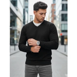 Pánský černý svetr s výstřihem FashionStreet WX2314