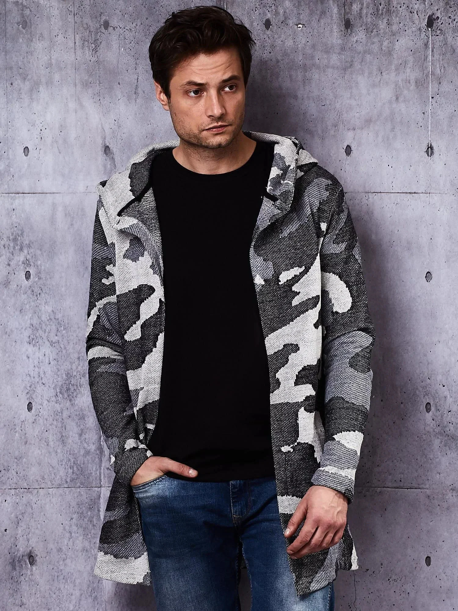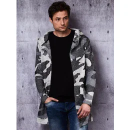 Dlouhá maskáčová mikina pánská dlouhá mikina pohodlného střihu bez zipu s kapucí Materiál: 100% bavlna