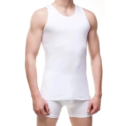 Pánský nátělník 213 Authentic white CORNETTE - bílá barva - z velmi kvalitní bavlny - široká ramínka - půlkulatý výstřih