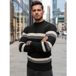 Pánský pruhovaný svetr s polovičním rolákem černý FashionStreet WX2127