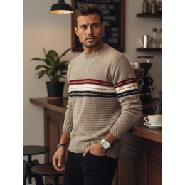 svetr s poutavým moderním pruhovaným vzorem, který dokonale zapadá do městských trendů. Díky měkkému materiálu se pohodlně nosí po celý den a klasický střih dodá eleganci každému outfitu. Ideální pro kombinaci s džínami i elegantními kalhotami, pro ty, kteří ocení styl a pohodlí.