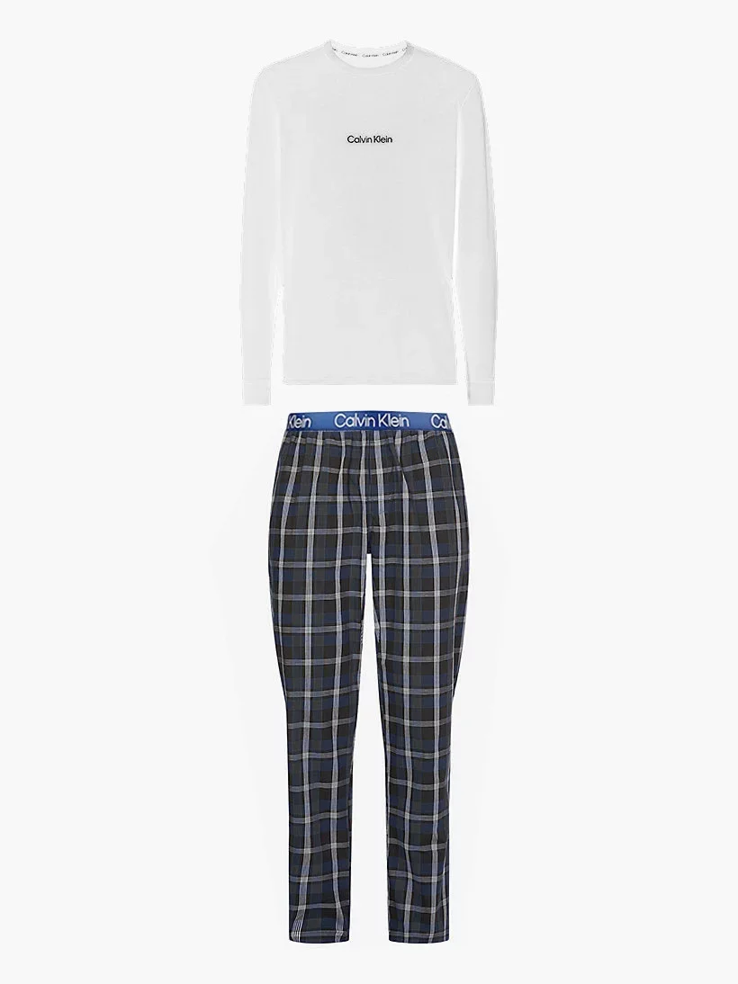 Pánský pyžamový set - NM2184E 1MT - bílá/modrá - Calvin Klein