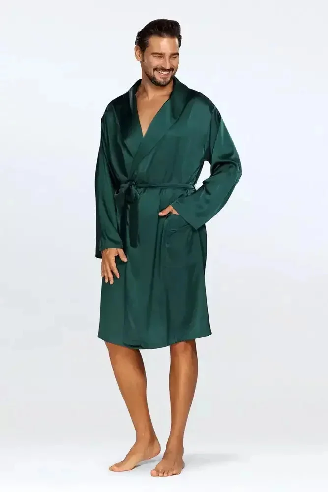 Pánský saténový župan Lukas zelený - DKaren