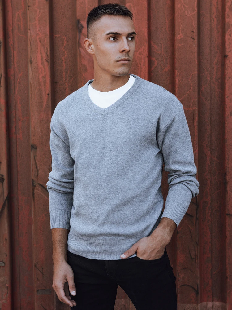 Pánský světle šedý svetr s výstřihem FashionStreet WX2201