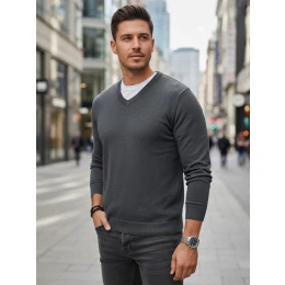 Pánské svetry s výstřihem do V WX2316 světle šedé