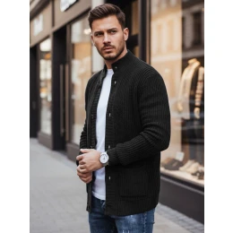 Hustá a křehká pletenina zlepšuje tepelný komfort a díky klasickému střihu je svetr vhodný jak pro ležérní stylizaci, tak pro strukturovanější komplety. Zapínání na knoflíky umožňuje rychle upravit stupeň prodyšnosti a černá barva usnadňuje kombinování svetru s různými kusy oblečení.