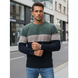 Pánský svetr s kulatým výstřihem zelený a tmavě modrý FashionStreet WX2319