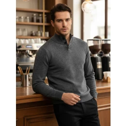 Klasický tvar svetru s límcem na knoflíky zajišťuje pohodlné každodenní nošení a přizpůsobí se smart-casual stylu. Měkký úplet zaručuje pohodlí po celý den a univerzální střih se hodí k mnoha kombinacím. Model je vhodný do práce, na schůzky i na každodenní vycházky.