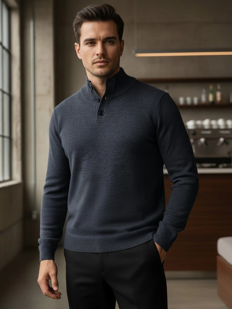 Klasický tvar svetru s límcem na knoflíky zajišťuje pohodlné každodenní nošení a přizpůsobí se smart-casual stylu. Měkký úplet zaručuje pohodlí po celý den a univerzální střih se hodí k mnoha kombinacím. Model je vhodný do práce, na schůzky i na každodenní vycházky.