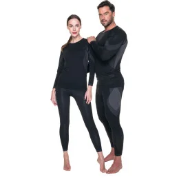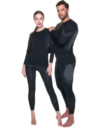 Na dvoubarevném materiálu jsou oblasti s odlišným způsobem utkání příze, proto je model prodyšný, poskytuje optimální tepelný komfort, rychle usychá, udržuje tělo v suchu a v optimální teplotě. Antibakteriální úprava předchází vzniku nepříjemného zápachu. Komplet má vypasovaný střih, pružný pas, rukávy a nohavice. Výstřih lemuje pružný lem rib 1x1. Model zdobí dekorační prvky a prošití. Komplet je určený mužům, kteří pracují v chladném, nebo zimním prostředí a kteří jsou neustále v pohybu.