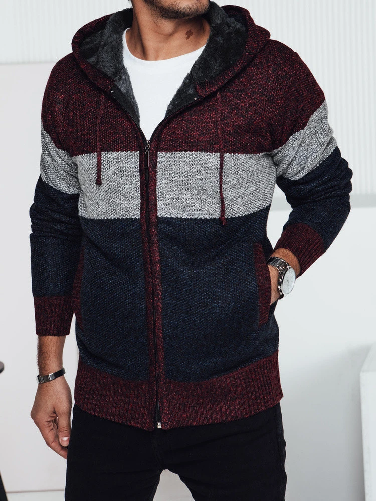 Pánský zateplený svetr s kapucí vínový FashionStreet WX2275