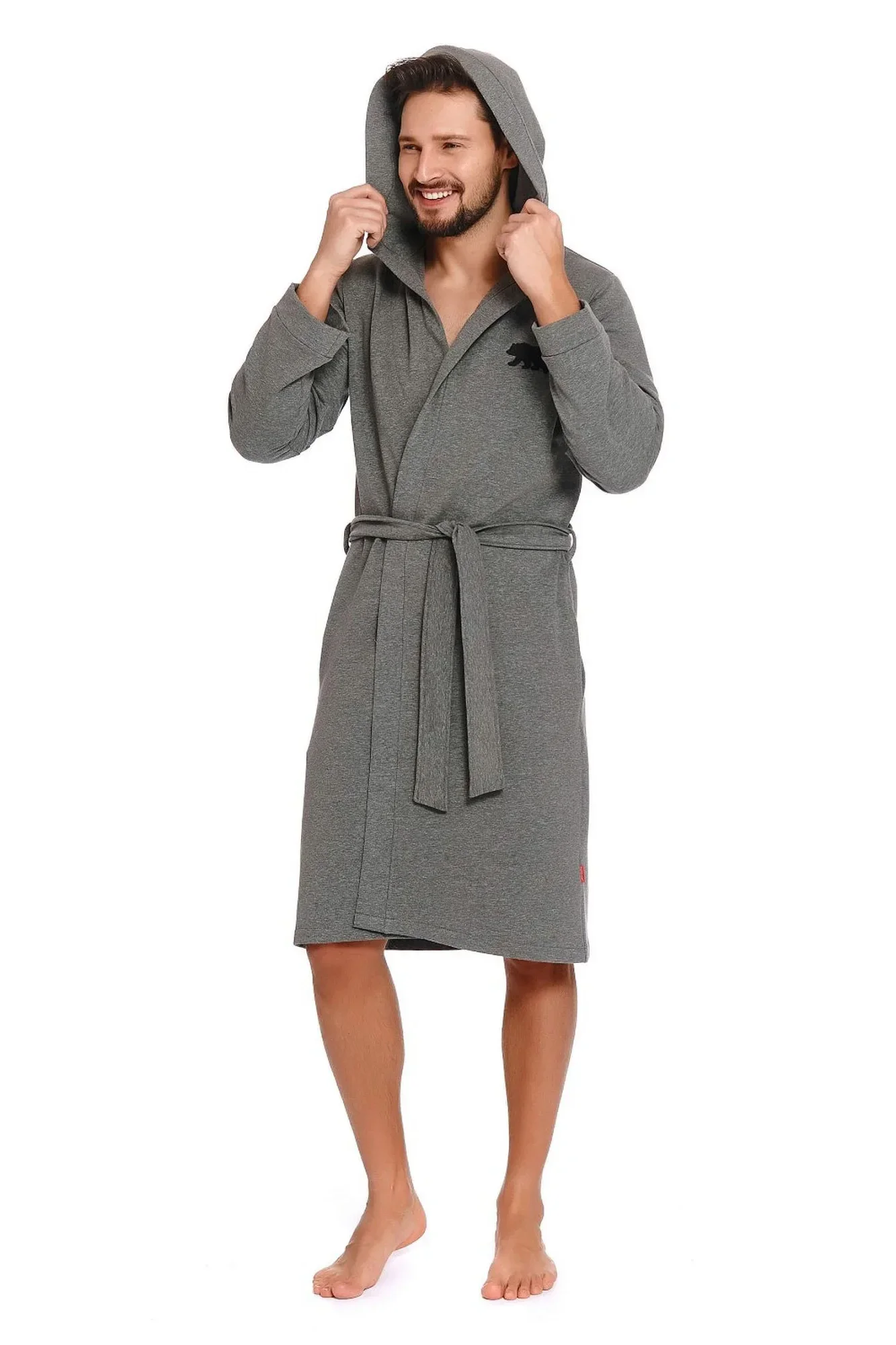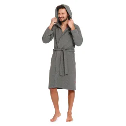 Pánský župan 9768 Doctor nap - vyrobený z velmi kvalitní a příjemné bavlny - šedá barva - s kapucí - s kapsami - vázání v pase