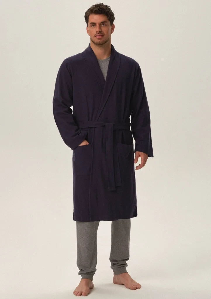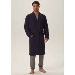 Stylový pánský župan značky Henderson. Velmi příjemný bavlněný župan má pohodlnou délku pod kolena, uvazuje se v pase. Na stranách jsou našité kapsy. Okolo krku je límec.