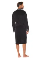 Zajímavý hladký župan s kapucí. Dobře sedí, v pase se zavazuje a na bocích má dvě kapsy. Potrubí v kontrastní barvě mu dodává zajímavý charakter. Nahoře je záplata. Polský výrobek vysoké kvality.