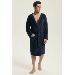 Pohodlný pánský župan volného střihu vyrobený z hladké látky, ideální k nošení doma a během relaxace. Model s kapucí, dlouhým rukávem a kapsami, které spojují pohodlí s praktickým využitím. Župan má délku před kolena a šňůrku, umožňující ideální přizpůsobení postavě. Skvělý také jako elegantní dárek pro blízkou osobu. Rozměry: Velikost M: Prsa 94-98 cm, boky 98-102 cm Velikost L: Prsa 98-102 cm, boky 102-106 cm Velikost XL: Prsa 102-106 cm, boky 106-110 cm Velikost XXL: Prsa 106-110 cm, boky 110-114 cm Velikost XXXL: Prsa 114-120 cm, boky 114-118 cm
