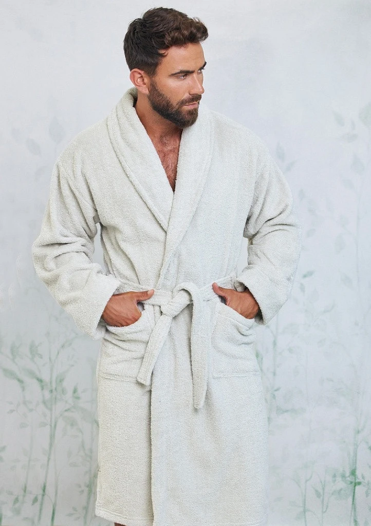Pánský župan španělské značky Muydemi. Župan z nové kolekce jaro/léto 2022. Má délku nad kolena a límec.