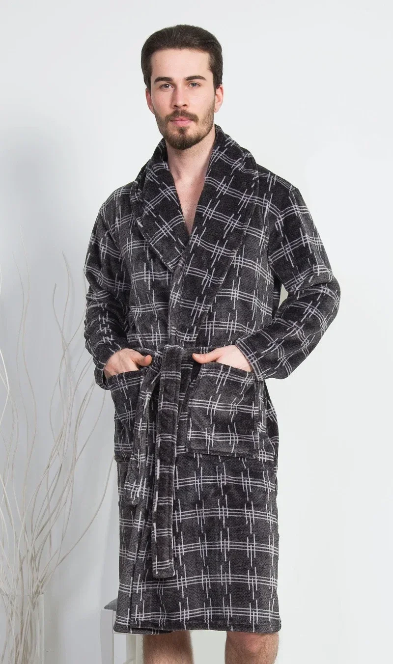 Pánský softový župan se šálovým límcem Adam. Klasický dlouhý pánský župan má praktické kapsy a je doplněn páskem. Látka županu je potištěna opakujícími se geometrickými tvary. Použitý softový materiál je jemný a poddajný na dotek. Župan je vhodný i na denní nošení, oceníte ho obzvlášť v chladných dnech.